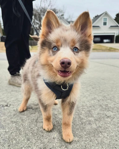 F2 Pomsky - is created when a female Pomsky and a male Pomsky are bred together, making the ratios vary from pup to pup since both parents are 50/50. We have never bred F2 Pomsky pups, but are considering it in the future!